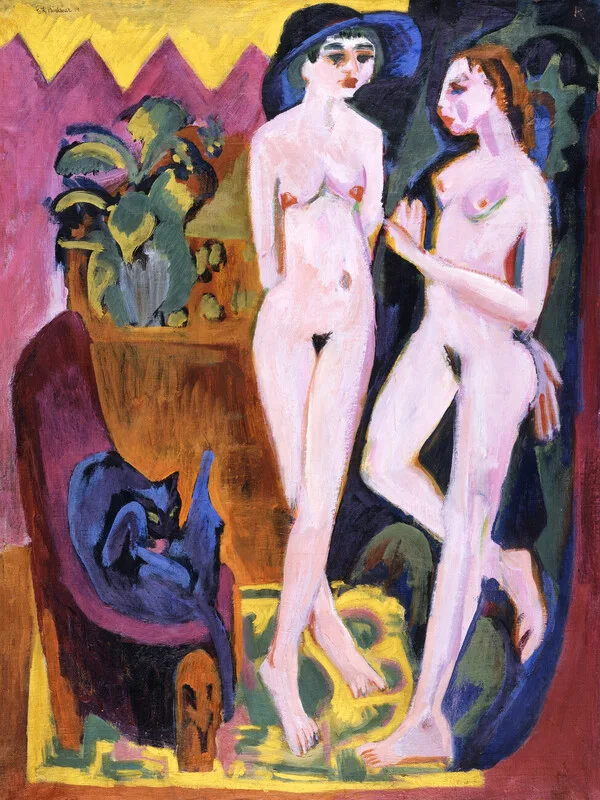 Canvas Print Two Nudes in a Room (Two Naked Female Figures With Exposed Breasts) - Ernst Ludwig Kirchner