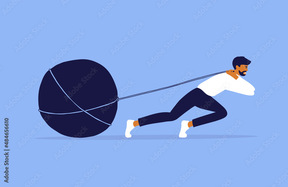Photography Businessman pulling big stone on rope