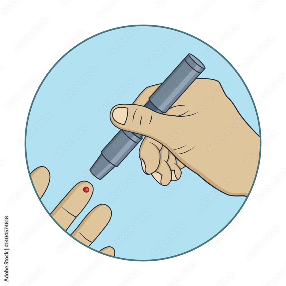 Canvas Print Diabetes lancet pricking into the finger. Vector illustration