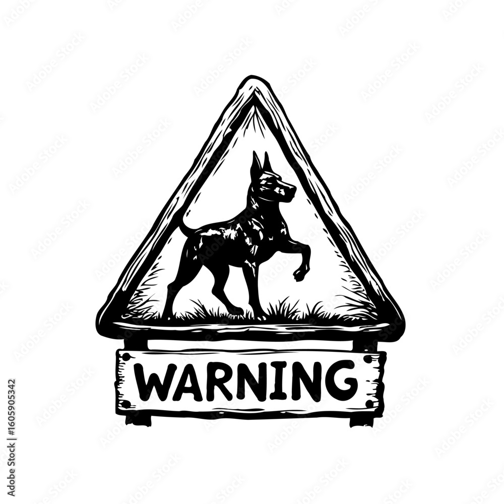Canvas Print A captivating black and white illustration of a warning sign featuring a watchfu