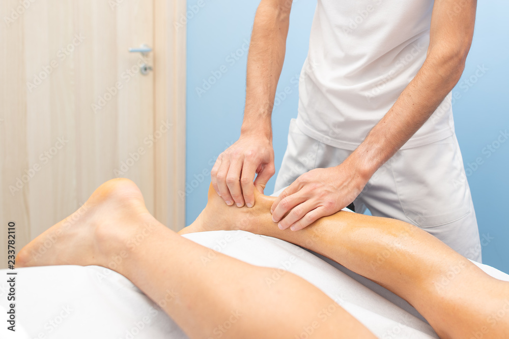 Canvas Print Physiotherapist during an Achilles tendon treatment