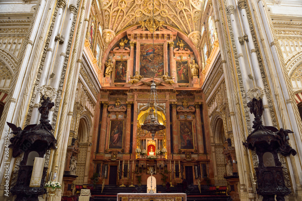 Canvas Print High main altar with carved wood lecterns of the Cordoba Our Lady of the Assumpt
