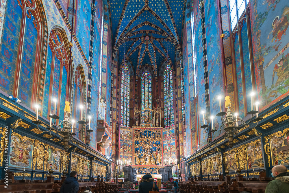 Canvas Print Krakow, Poland December 17, 2021; View of the interior of St