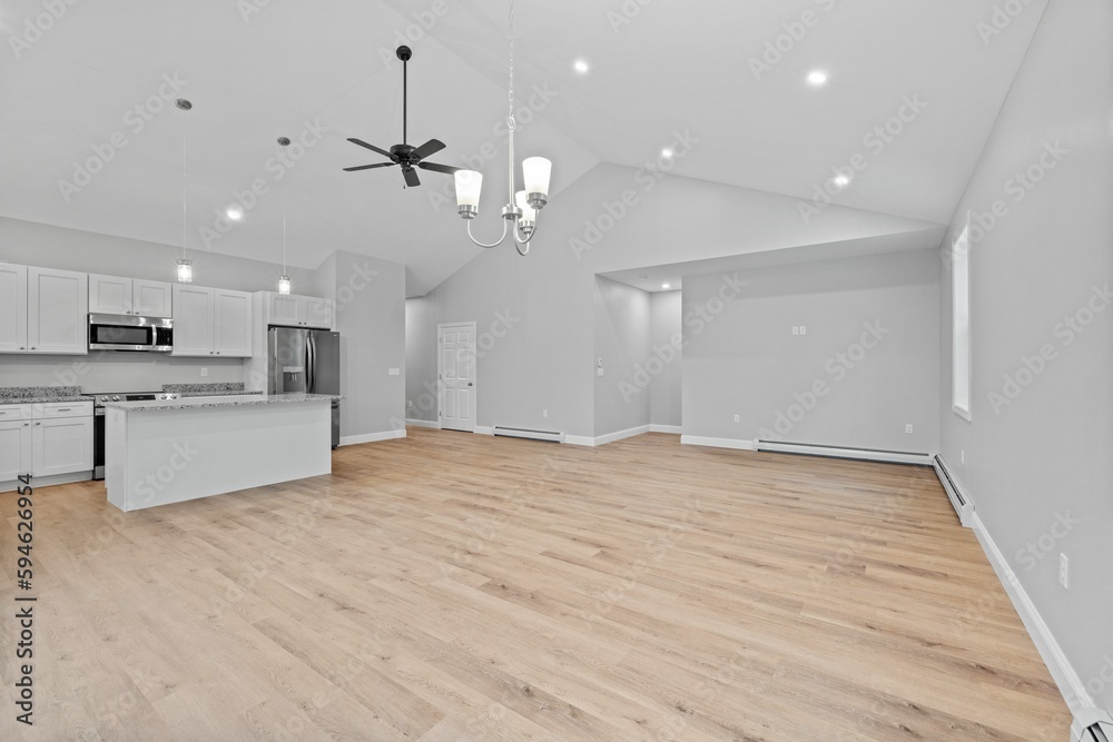 Canvas Print Room features a spacious kitchen with hardwood floors in a light gray color