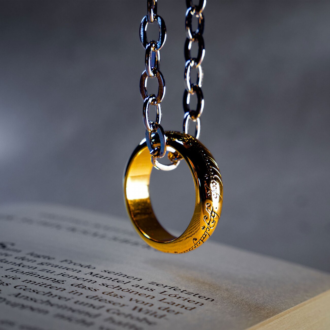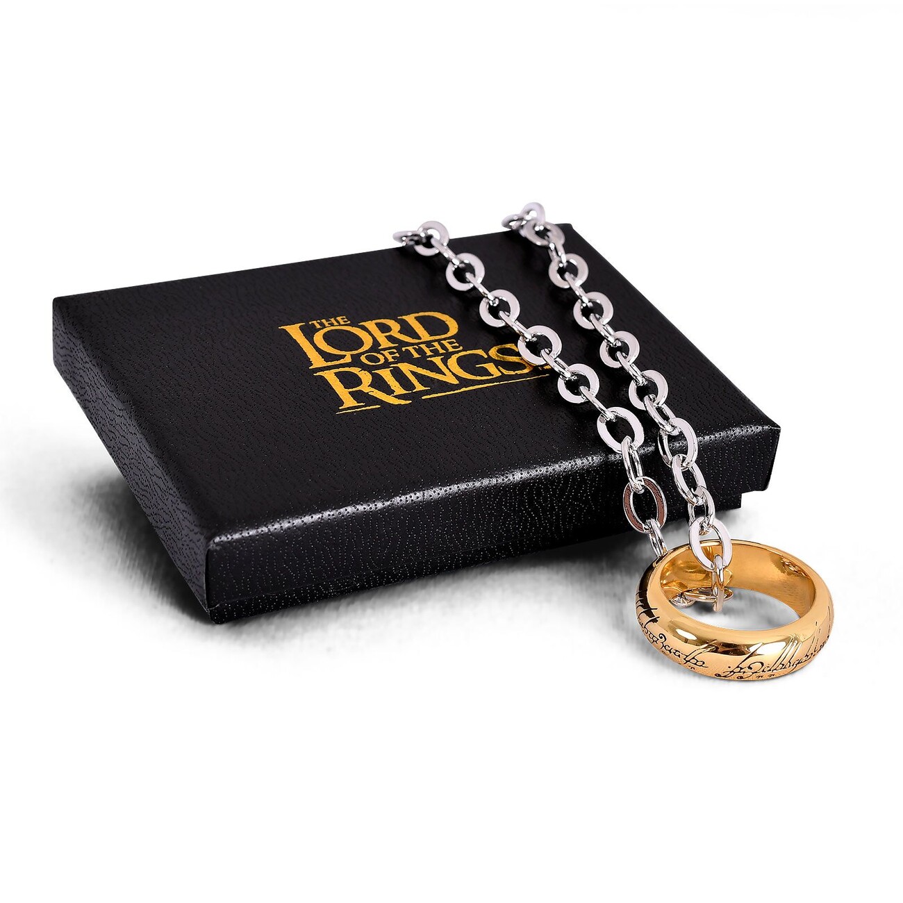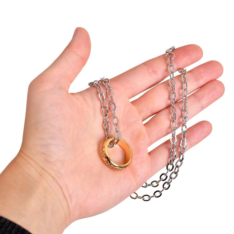 A unique Lord of the Rings ring everyone would like to have! Now it can be yours! It is made of stainless steel and suspended on a 60 cm long chain.