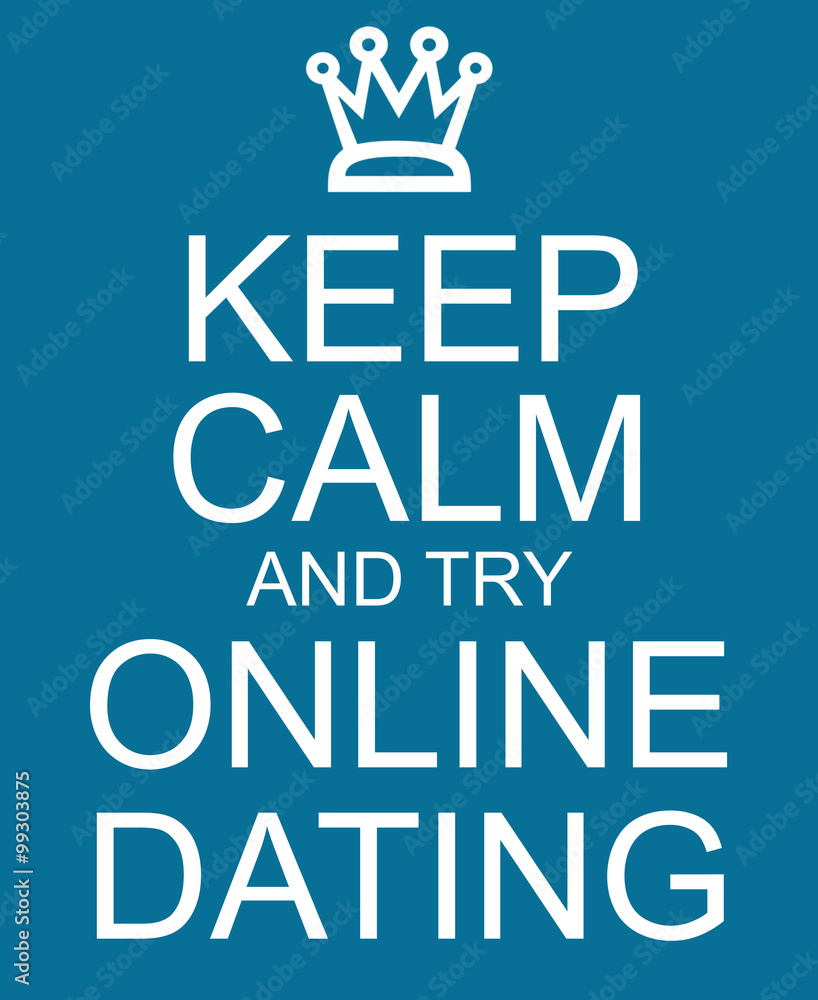 Canvas Print Keep Calm and try Online Dating Blue Sign