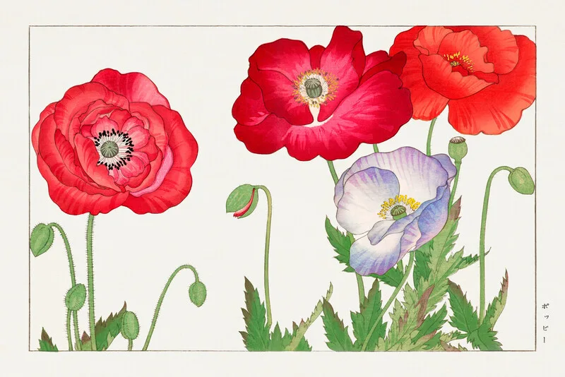 Canvas Print Vintage Poppy (Japanese Woodblock Floral) - Tanigami Kônan