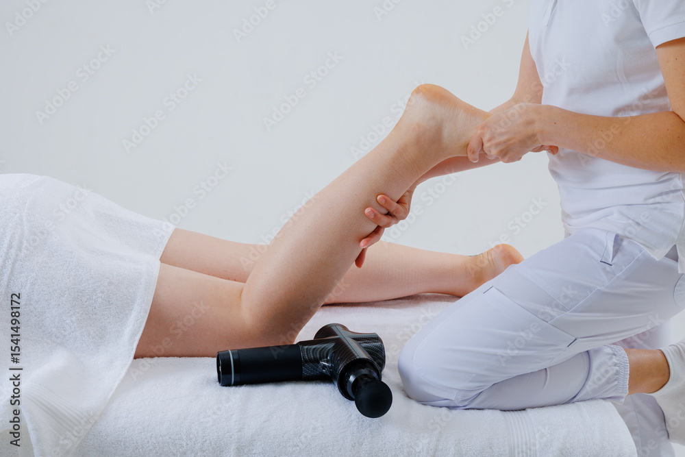 Photography Physiotherapist Performing Manual Foot and Leg Therapy for Pain Relief and Muscl