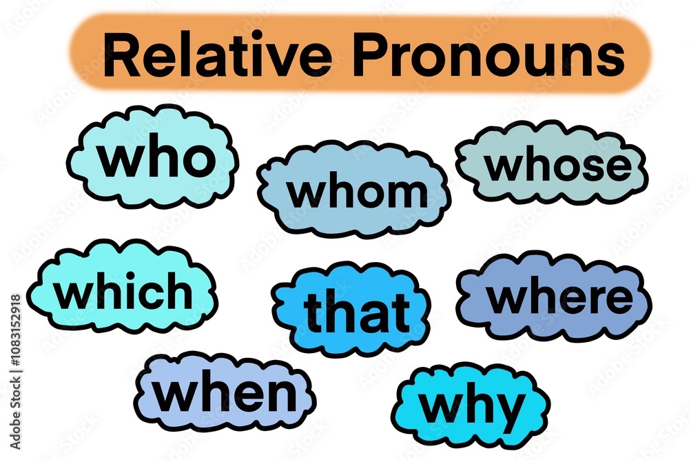 Photography Hand drawn picture of clouds bubbles with texts about Relative pronouns