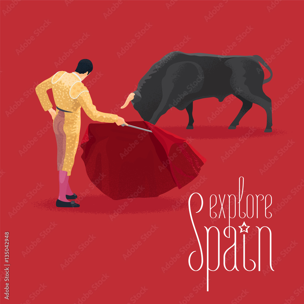 Photography Bull and bullfighter on Spanish arena during bullfighting performance vector ill