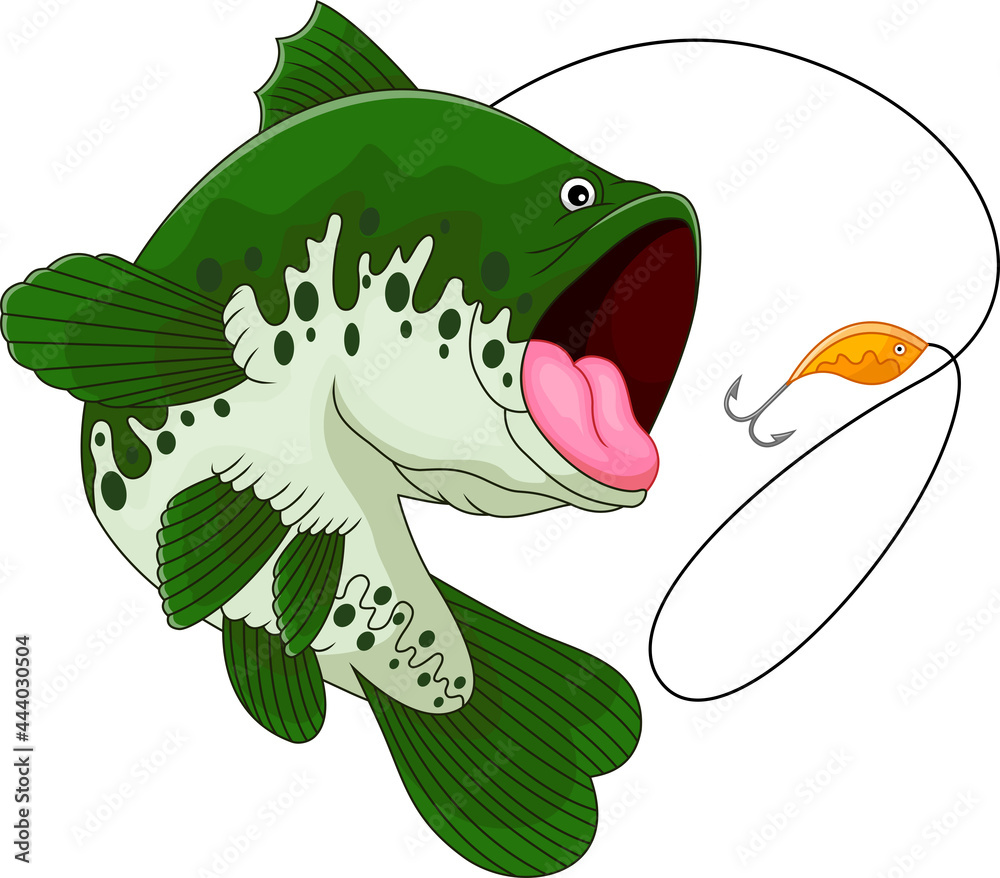 Photography cartoon fish with hook on white background