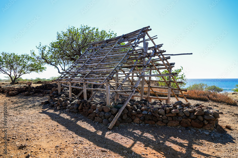 Photography Remains of a Hawaiian Hale in the ancient fishing village in ruins of the Lapaka