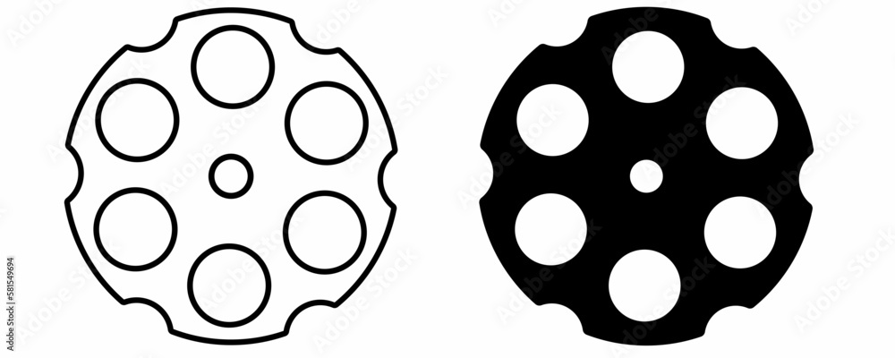 Photography outline silhouette revolver cylinder icon set isolated on white background