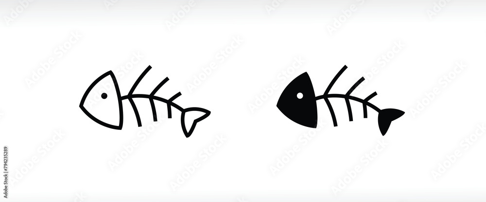 Photography fish bones icon animals food, spine line and flat icons set, editable stroke iso