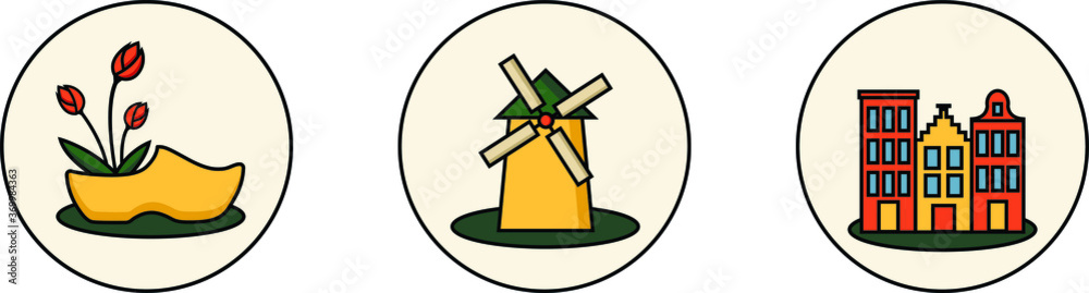 Photography Set of round isolated sticker icons with symbols of Amsterdam, Holland