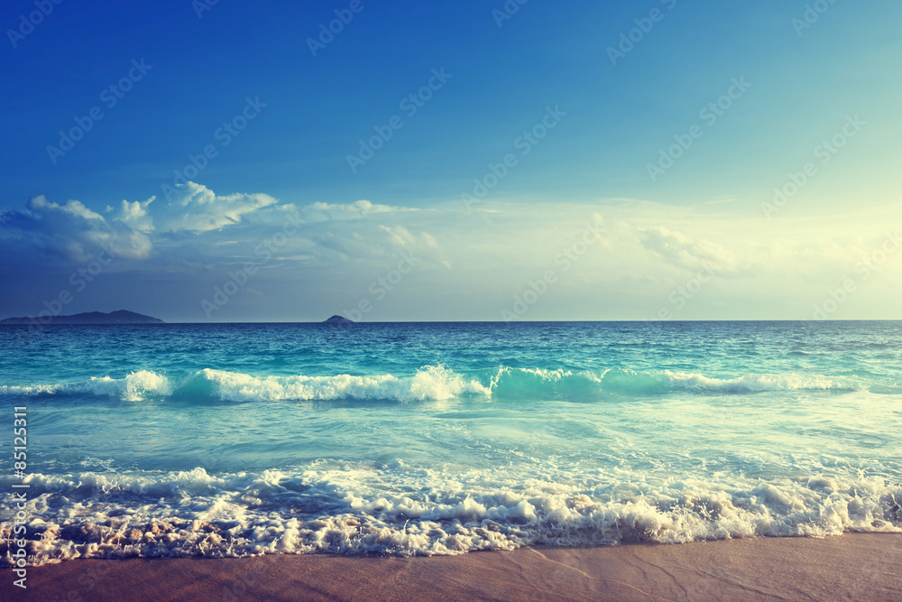 Photography seychelles beach in sunset time