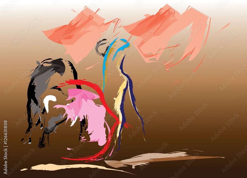 Sticker The Spanish bullfighter in a bullring with a bull