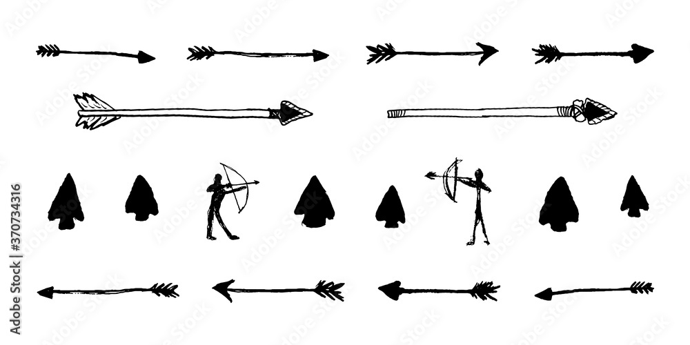 Sticker Set of arrow and spear of primal primitive man
