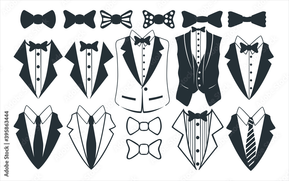 Sticker gentlemen tuxedo and bow tie vector graphic design template set for sticker, dec