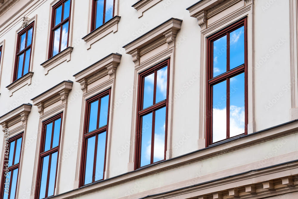 Sticker Reflection Of Blue Sky In Glass Windows Of Historic Building In Vienna