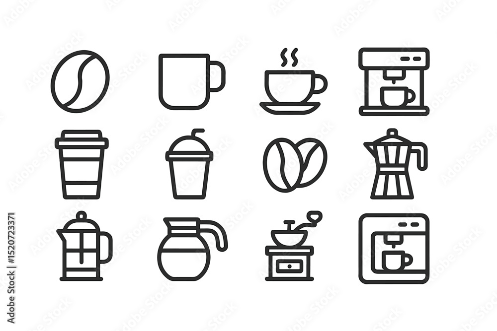 Wall Mural Illustrations of coffee-related items and accessories designed for a cafe aesthe