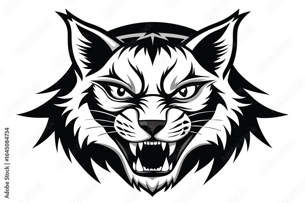 Wall Mural illustration shows an angry wildcat head snarling aggressively on the white back