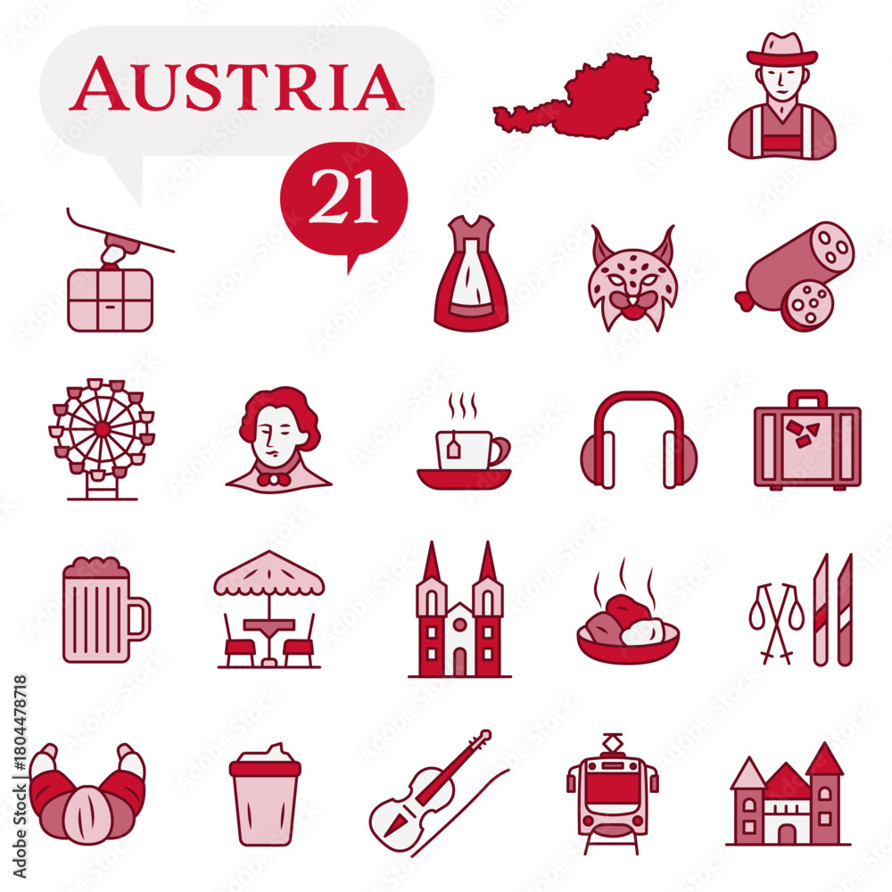 Wall Mural A set of red and white icons dedicated to life in Austria.