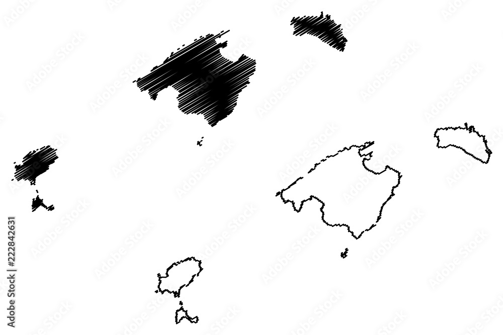 Wall Mural Balearic Islands (Kingdom of Spain, Autonomous community) map vector illustratio