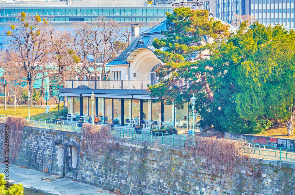 Wall Mural The restaurant on the bank of Wien River, Vienna, Austria