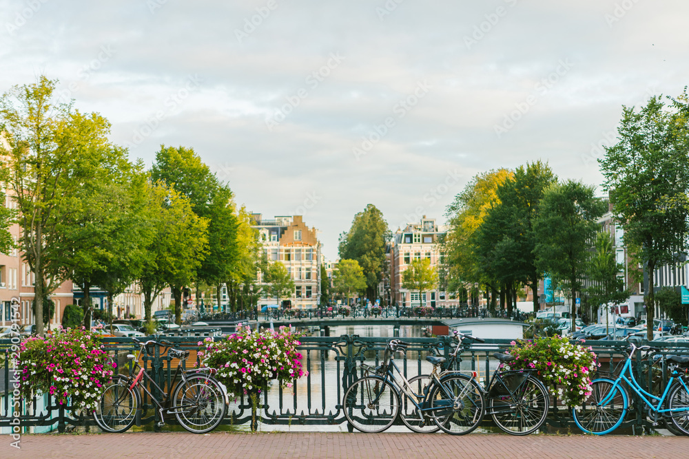 Wall Mural Bicycle parked on a bridge above the water in Amsterdam
