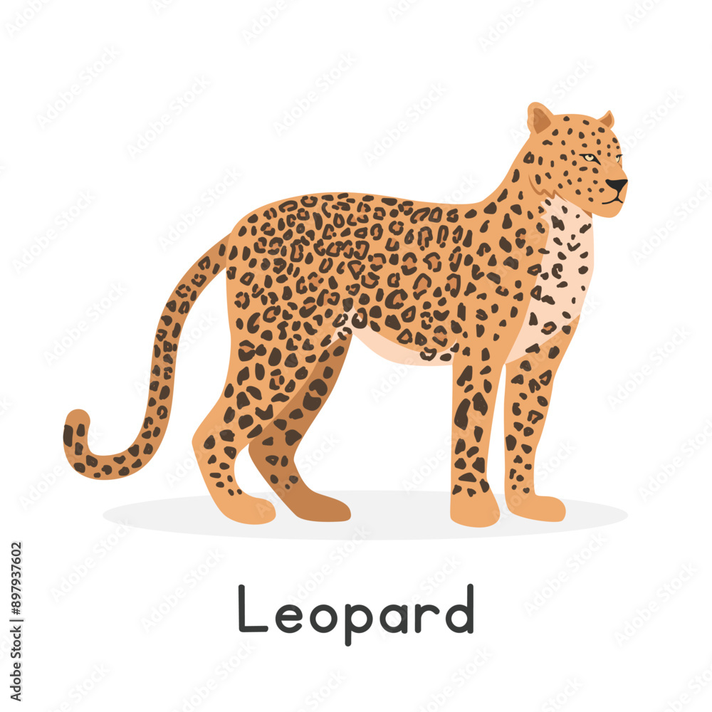 Wall Mural Leopard vector illustration, cartoon clipart character, animal in flat style