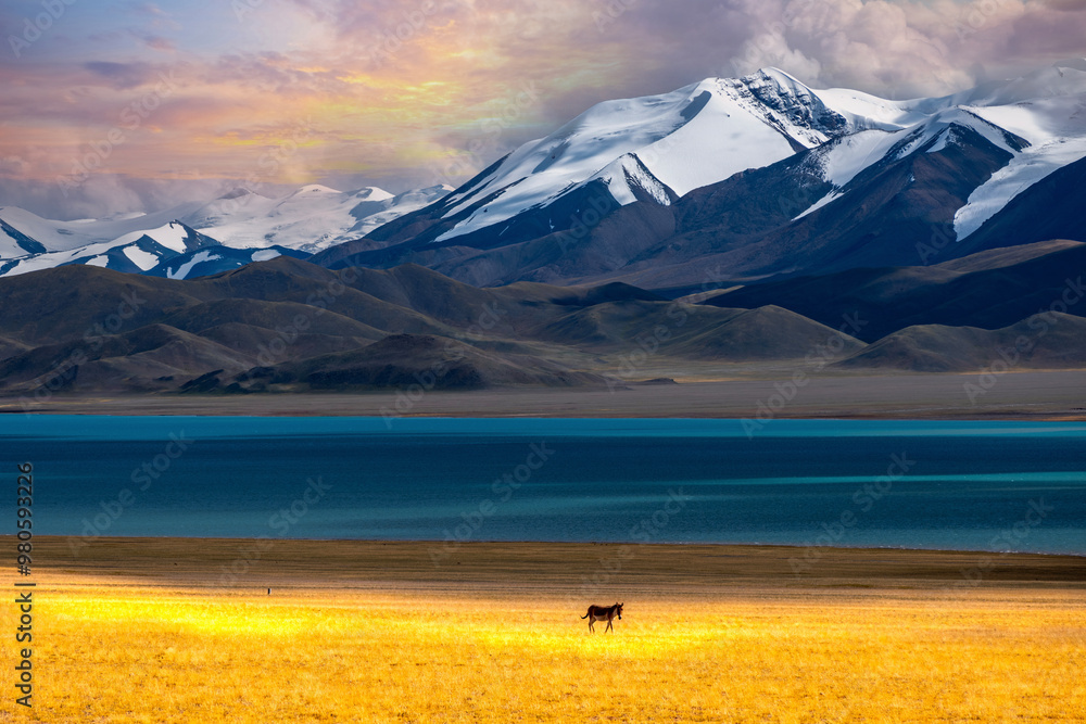 Wall Mural Mountains and lakes in the Xinjiang Plateau of China, and grassland and pasture