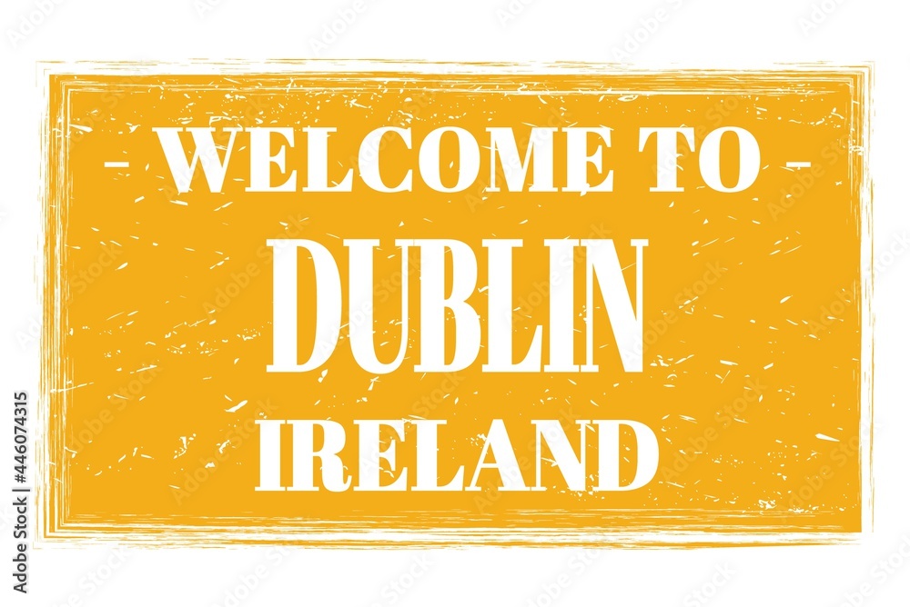 Canvas Print WELCOME TO DUBLIN - IRELAND, words written on yellow stamp
